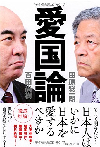 去年底出版的「愛國論」,內容是兩位知名人士的對談錄。田原総一朗(81歲)年輕時擔任過導演,後來轉行當記者及評論家,也是電視及廣節目主持人。百田尚樹(59歲)是「永遠的0」原著作者,曾經擔任過NHK經營委員。其中田原的政治立場較中性,百田的政治立場相當右翼。